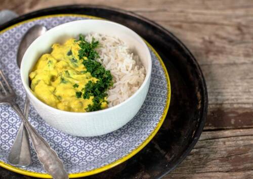 Überzeugt mit Hülsenfrüchten und frischen Kräutern: Mandel-Zucchini-Curry. Foto: SevenCooks*