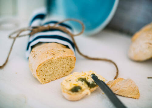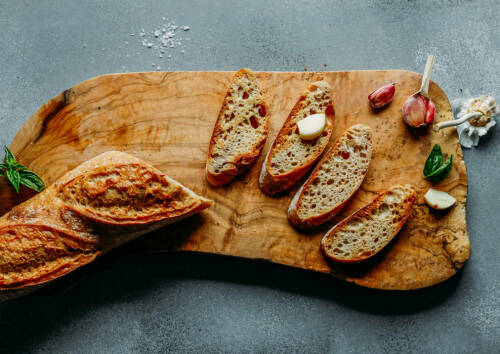 Für selbstgemachte Bruschetta ist gutes Brot entscheidend. Am besten nimmst du Weißbrot, wie Ciabatta und Baguette oder ein Bauernbrot.