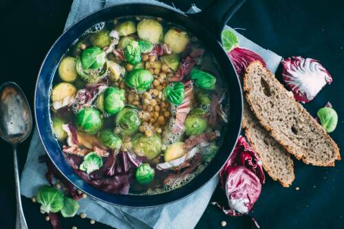 In Rosenkohl stecken Senföle, die antiviral, entzündungshemmend und antibakteriell wirken. Zusammen mit grünen Linsen als Suppe und Gewürzen wie Kardamom und Ingwer als Immun-Booster, bist du für kalte Winter-Tage gut vorbereitet.