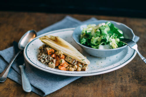 Bunter Quinoa mit Karotten-Tofu-Pfanne