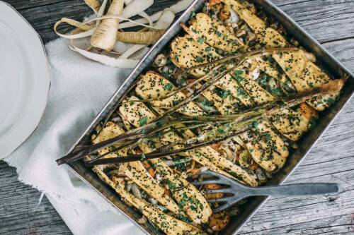 Zugegeben: Schwarzwurzel überzeugt die wenigsten auf den ersten Blick. Denn sie sieht - nun ja - aus wie ein Stück Holz. Aber wer sich davon nicht täuschen lässt, zum Gemüseschäler greift und das weiße Innere freilegt, begreift sofort, warum man sie auch "Winterspargel" nennt. So eignet sie sich unter anderem für diese Galette. Damit du sie genießen kannst, achte beim Kauf darauf, dass die Wurzeln nicht gebrochen sind.