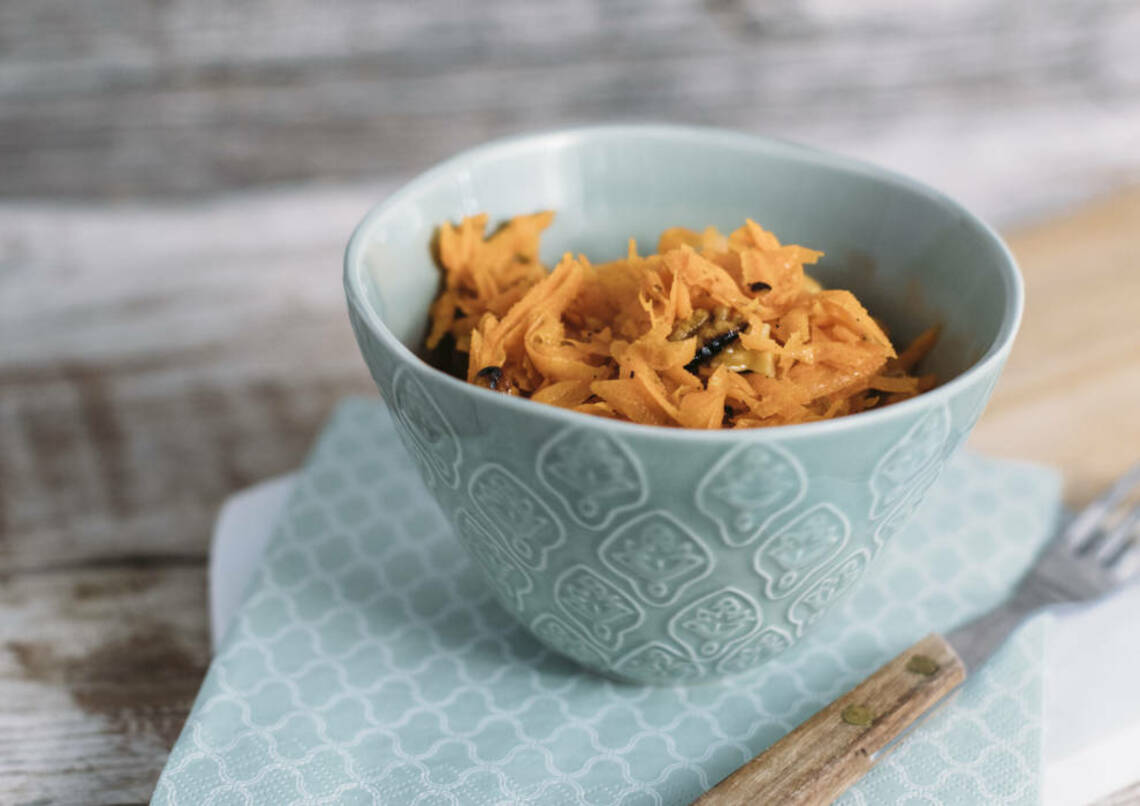 Diese Karottenrohkost ist gesund und kann schnell aus nur wenigen Zutaten zubereitet werden. Foto: SevenCooks
