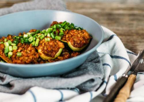 Bietet Geschmacksvielfalt und macht satt: Gefüllte Zucchini mit Grünkern. Foto: SevenCooks