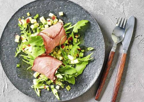 Dieses Gericht vereint zwei meiner liebste Rezept-Eigenschaften: Es geht schnell und ist Low Carb. Denn in nur 30 Minuten kannst du diese leckeren Rollen aus Roastbeef gefüllt mit Quark, Gorgonzola und einem Salat aus Staudensellerie, Apfel und Rucola zubereiten. Ein herrlich leichtes Essen, das nicht nur an heißen Tagen frisch schmeckt und einfach zuzubereiten ist.