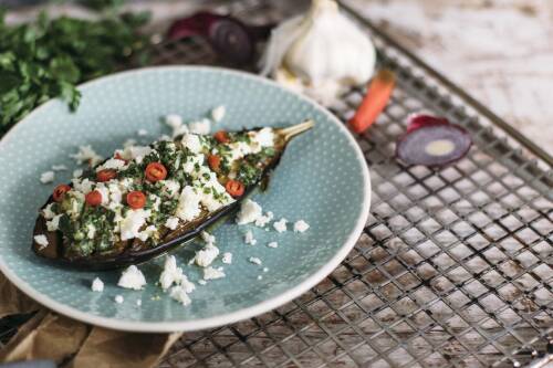 Mittwoch: Geröstete Auberginen mit Feta und Kräutern