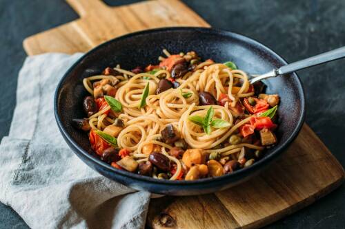 Freitag: Pasta mit Aubergine und Kirschtomaten