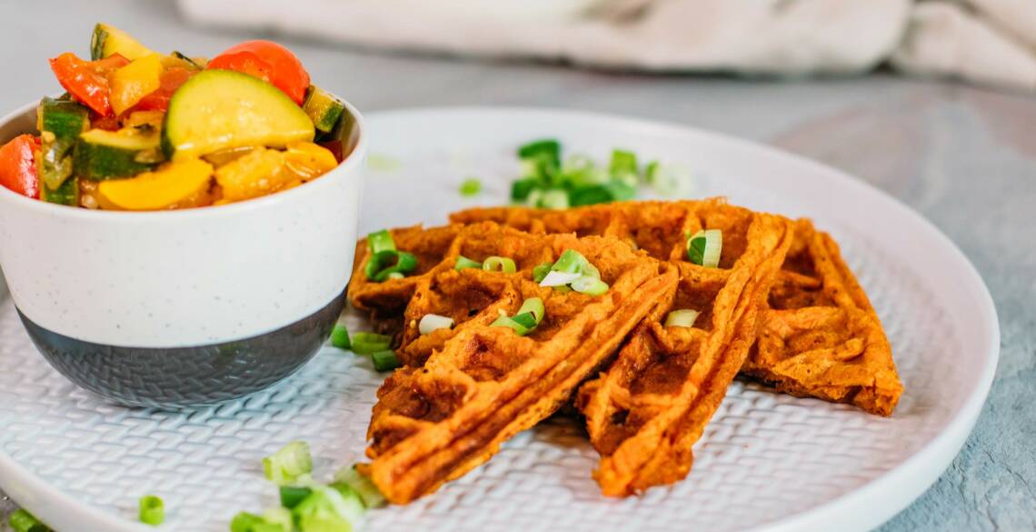 Du möchtest etwas Neues ausprobieren? Dann bist du bei diesem Rezept goldrichtig! Die Waffeln aus einem lockeren veganen Süßkartoffel-Teig sättigen dich und dazu gibt es leckeres Ratatouille. Einfach ein Genuss!