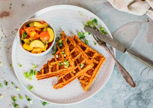 Montag: Süßkartoffel-Waffeln mit Ratatouille