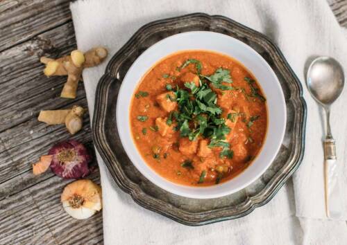 Wie wäre es mit einem Abstecher nach Indien? Tofu Masala ist die vegane Variante des Klassikers Chicken Tikka Masala und versetzt dich sofort in den Urlaub. Die süß-scharfe Kombination harmoniert perfekt und lässt dich nicht eine Sekunde an Fleisch denken. Hmmm, lecker.