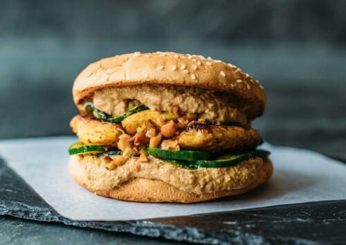 Ich weiß nicht wie es dir geht, aber so langsam kann ich den klassischen Burger nicht mehr sehen. Wir haben daher mal ein wenig gewagtere Rezepte für dich entwickelt. Wie dieses hier mit Hähnchenbrustfilet, Gurke und einer würzigen Erdnusssoße. Aromen von Kokos, Chili und Zitronengras hauchen das Gericht asiatisch an, das solltest du dir nicht entgehen lassen.