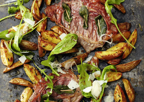 Dienstag: Saltimbocca mit Rosmarinkartoffeln und Rucola