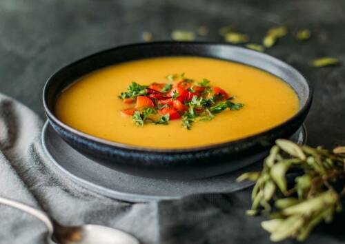 Unsere Kartoffel-Gemüse-Suppe ist eine tolle Kombi, da sie Sattmacher und Vitamine vereint. Das viele frische Gemüse spendet dir ausreichend Nährstoffe und die Kartoffeln sorgen für ordentlich Sättigung. Die Kräuter Rosmarin und Thymian verfeinern das ganze zu einem aromatischen Genuss. Guten Appetit!