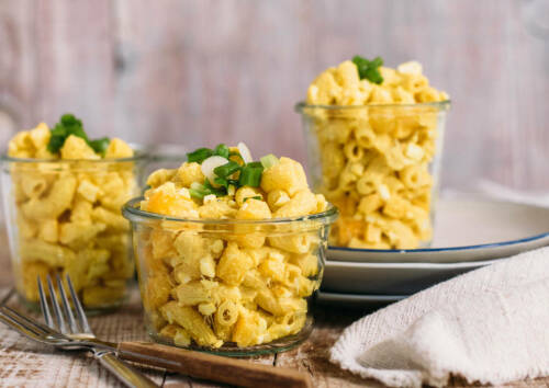 Nudelsalat ist einfach etwas Tolles. Dieser hier kombiniert frische Aromen von gelber Paprika mit orientalischer Würze von Curry mit cremigem Ei. Die klassisch verwendete Mayo kannst du – wenn du es etwas figurfreundlicher haben magst – ganz leicht durch etwas Joghurt ersetzen.