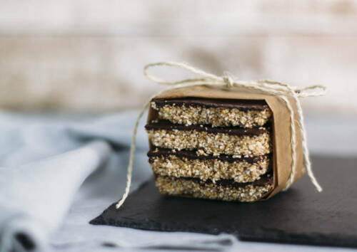 Schokoladige Rezepte: Diese verführerischen Schokocrossies laden zum Knuspern ein und liefern Omega-3-Fettsäuren und Vitamin E aus Mandeln. In diesen unwiderstehlichen Amaranth-Schoko-Bars verstecken sich wiederum essentielle Aminosäuren aus Haselnüssen, Cashewkernen und aus eisenreichem Amaranth.