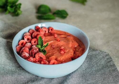 Wenn von gesundem Eis die Rede ist, darf unsere Pfirsich-Himbeer-Nicecream nicht fehlen. Diese alternative Süßigkeit für Kinder ist prall gefüllt mit Mineralstoffen wie Eisen, Vitaminen und sekundären Pflanzenstoffen, die auch für die Farbe verantwortlich sind. Kleine Mädchen werden von dem Softrosa sicher begeistert sein.