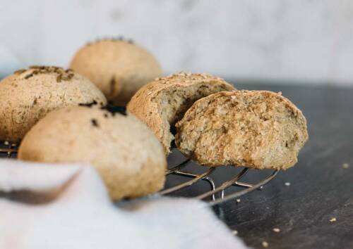 Tipp: Back direkt 10 Brötchen – 4 für diese Woche, 6 für nächste Woche (einfrieren und aufbacken) und bereite ein ganzes Glas Marmelade zu.