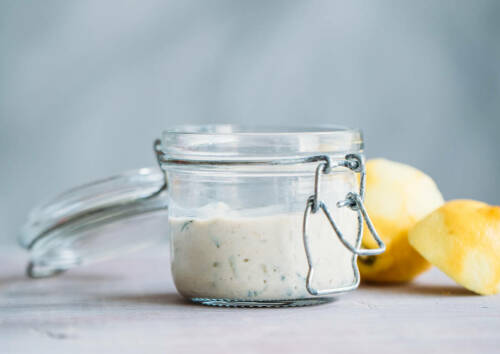 Fertige Mayonnaise liefert nicht nur eine Extraportion Fett, es tummeln sich auch unnatürliche Zusatzstoffe wie Emulgatoren und Geschmacksverstärker darin.