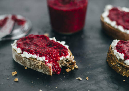 Du möchtest den Morgen mit einem fruchtigen Marmeladenbrot begrüßen? Im Sommer kannst du frische Beeren vom Feld pürieren, mit etwas Honig oder Agavendicksaft verfeinern und mit ein paar Chiasamen – ganz ohne Kochen – andicken.