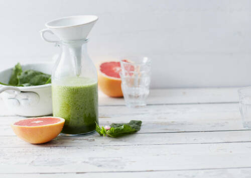 Probiere doch mal diesen zuckerarmen Spinat-Grapefruit-Smoothie mit einer Extraportion Antioxidantien aus.