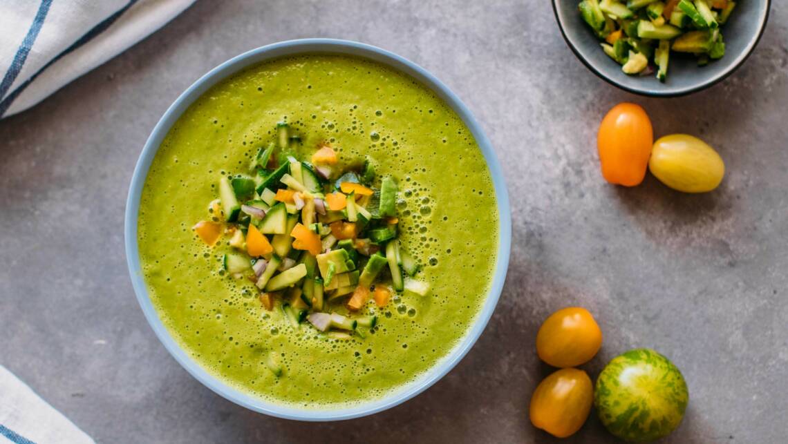 Du suchst leckere und abwechslungsreiche vegane Rezepte? Bei uns findest du jede Woche einen Wochenplan mit 5 komplett pflanzlichen Gerichten. Diese Woche unter anderem mit One Pot Pasta und grüner Gazpacho.