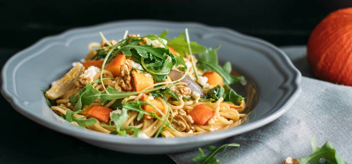 Nährstoffreich und nachhaltig: Wir stellen dir jede Woche einen Wochenplan mit 5 Gerichten zusammen, darunter jeweils ein Fisch- oder Fleischrezept. Diese Woche unter anderem mit Kabeljau auf Gemüsebett und Vollkorn Pasta mit Kürbis und Rucola.