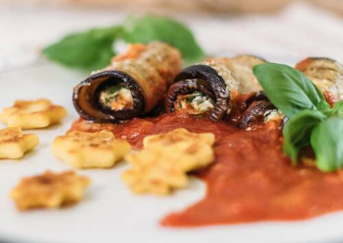 Aubergineninvoltini mit Spinat-Ricottafüllung und Gnocchi-Sternen
