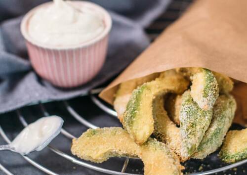 Eine gesunde und kalorienarme Alternative zu herkömmlichen Pommes sind unsere Avocado-Fritters mit Aioli. Ob du die Fritters als Starter oder in einer größeren Portion als Hauptgericht genießt, ist ganz egal – sie sind auf jeden Fall der Hit. Sollte Aioli nicht dein Fall sein, kannst du einfach den Knoblauch weglassen.