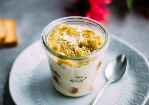Bisher kannte ich Tiramisu nur mit Beeren oder Kirschen, die eignen sich sehr gut, da sie von Haus aus süß sind. Für einen sauren Twist sorgt jedoch in diesem Rezept der Rhabarber, der statt der üblichen Beeren verwendet wird und dank etwas Rohrzucker und Orangensaft kommt das fruchtige Aroma trotzdem nicht zu kurz. Genau das richtige Rezept um etwas Abwechslung in deine Dessert-Küche zu bringen.