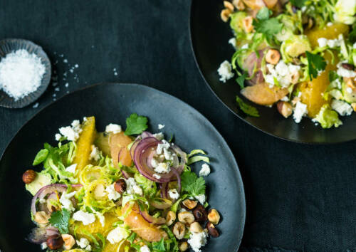Zitrusfrischer Rosenkohlsalat mit Nussdressing