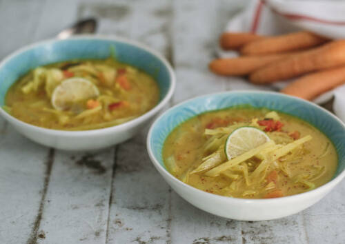 Unsere asiatische Kohlsuppe ist eine sehr schmackhafte Variante der sonst oft negativ behafteten klassischen Kohlsuppe. Fernöstliche Gewürze wie Kurkuma und Ingwer und frische Zutaten wie Koriander und Frühlingszwiebeln entführen dich direkt nach Asien. Probier's doch mal aus.