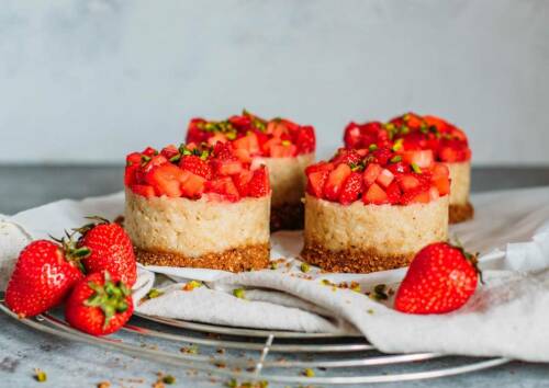 Die kleinen Milchreis-Törtchen sehen nicht nur gut aus, sondern schmecken auch so. Mehl und Ei brauchst du dabei keines. Der Boden besteht aus Keksen, Kokosöl und Datteln und muss daher auch nicht gebacken werden. Für das Topping kannst du Obst der Saison verwenden.