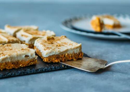 Als Alternative zum Karottenkuchen haben wir unser Rezept für Raw Carrot Bites ohne Mehl und Ei. Die gesunde Variante basiert auf Karotten, Haselnüssen, Walnüssen und Datteln und wird mit einer feinen Cashewcreme getoppt. Frisch aus dem Kühlschrank ist es das perfekte, gesunde Dessert für den Nachmittagskaffee in der warmen Jahreszeit.