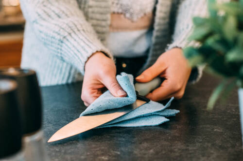 Bretter und Messer gleich nach dem Gebrauch mit heißem Wasser abspülen (und ab damit in die Spülmaschine).