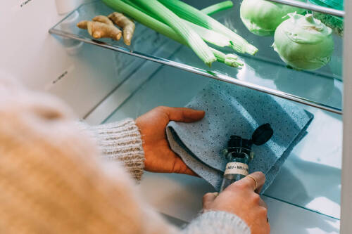 Ein sauberer Kühlschrank ist ein Muss, wenn es um das Vermeiden von Bakterien geht. Durch die Aufbewahrung verschiedenster Lebensmittel sammeln sich auch hier die allseits unbeliebten kleinen Eindringlinge. „Wie oft?“, fragst du dich? Wenn du deinen Kühlschrank immer nur dann reinigst, wenn sich im Gemüsefach schon Schimmel angesammelt hat, ist es schon zu spät. Besser wäre es, einmal im Monat deinen Kühlschrank komplett auszuräumen und mit einem feuchten Tuch und Allzweckreiniger oder Spülmittel auszuwischen, um einer Keimübertragung und dem Lebensmittelverderb vorzubeugen.