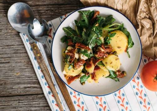 Abendessen: Salzkartoffeln mit Feldsalatpesto überzeugen mit aromatischen Nuancen dank Knoblauch, einem Hauch Zitrone und Parmesan. Das Eisen des Spinats kann dank des Vitamin C der Zitrone besonders gut aufgenommen werden. Für eine ausreichende Sättigung kannst du direkt 2 Portionen zubereiten. Dazu gibt es einen Gemischten Salat mit einer Extraportion Mikronährstoffe.