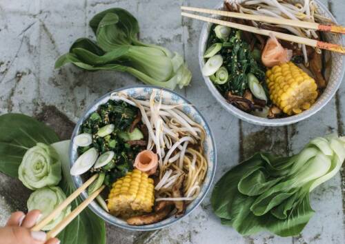 Mittagessen: Ramensuppe als japanischer Klassiker mit reichlich Gemüse, Pilzen, Sesam und Ramennudeln für einen Samstag im Kreise deiner Liebsten.