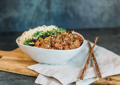 Mittagessen: Teriyaki Bowl in veganer Rezeptur die Zweite für eine genussvolle Mittagspause.