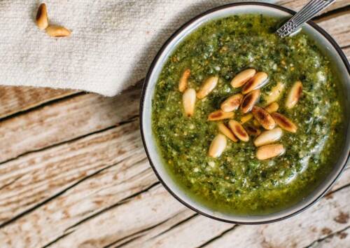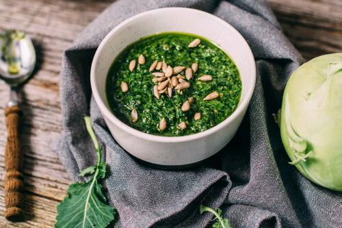 Kohlrabikrautpesto mit Sonnenblumenkernen
