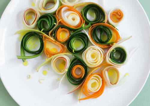 Meine Oma sagte schon immer, dass in der Schale die meisten Nährstoffe stecken. Daher musste ich auch als Kind die ungeliebte Apfelschale mitessen. Aber nicht nur beim Apfel kann man die Schale mitessen, sondern auch von anderem Obst und Gemüse – und das obwohl sie meist weggeworfen wird. Wie wäre es also mit einem Salat aus den Schalen? In unserem Rezept erhalten Gurken, Karotten, Rettich und Zucchinischalen eine neue Verwendung.