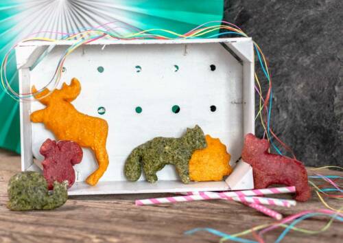 Falls du das Gemüse den kleinen Partygästen untermogeln möchtest, backe diese niedlichen Tierbrote. Dafür werden gekochte und pürierte Gemüsesorten mit Mehlmischungen verrührt und verschiedene Tiermotive ausgestochen. Danach musst du sie nur noch kurz im Ofen backen lassen.