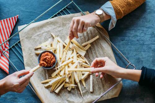 Auch in Form von krossen Pastinaken-Chips treten die natürlichen Aromastoffe besonders schmackhaft in den Vordergrund, sodass das Wurzelgemüse neben Rote Bete und Süßkartoffeln daher eine beliebte Zutat für Gemüse-Chips ist.