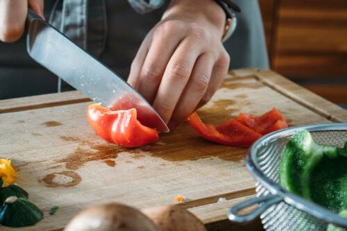 Egal, ob du dich für Fleisch, Fisch oder Gemüse entschieden hast – schneide alles, was in den Fonduetopf kommt, in mundgerechte Happen. So gart es im Topf gleichmäßig und kann anschließend direkt verspeist werden – nach einem kleinen Umweg über deine Lieblingssoße, versteht sich. Wenn du in Brühe garst, solltest du deine Zutaten etwas dünner schneiden, als fürs Fettfondue. Du kannst die Zutaten aus Organisationsgründen ruhig schon ein paar Stunden vorher schneiden, solange du sie anschließend im Kühlschrank aufbewahrst.
