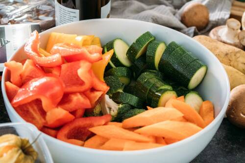 Welches Gemüse? Optimal sind Sorten mit "Biss" wie Karotten, Blumenkohl, Brokkoli oder Staudensellerie. Beliebt sind auch Paprika, Zwiebeln, Champignons und Zucchini.