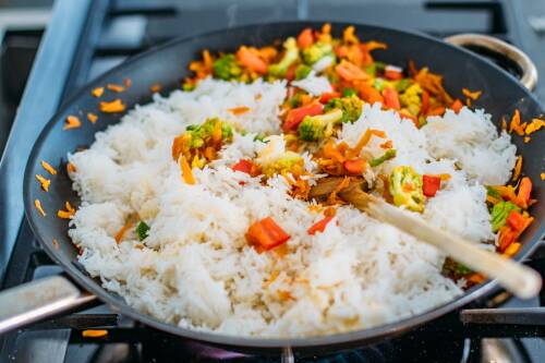 Reis im Kochbeutel: Solltest du deinen Reis im Kochbeutel zubereiten, dann ist die Wassermethode besser, da du ohne den Beutel aufzuschneiden nicht genau abschätzen kannst, wie viel Wasser dein Reis braucht.
