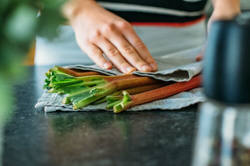 Rhabarber ist ein Gemüse, das besonders schnell austrocknet. Nach zwei bis drei Tagen ist er schon nicht mehr ganz so gut fürs Kochen oder Backen geeignet. Doch es gibt einen einfachen Trick, wie du diese Zeitspanne locker verdoppeln kannst. Wickel deinen Rhabarber – ähnlich wie Spargel – in ein feuchtes Tuch und lege ihn dann in deinen Kühlschrank. So bleiben die Stangen für mindestens eine Woche frisch.
