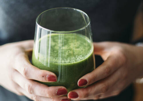 Morgens trinke ich auch gerne einen Smoothie. Zum Rührtofu am liebsten unseren Feldsalatsmoothie.