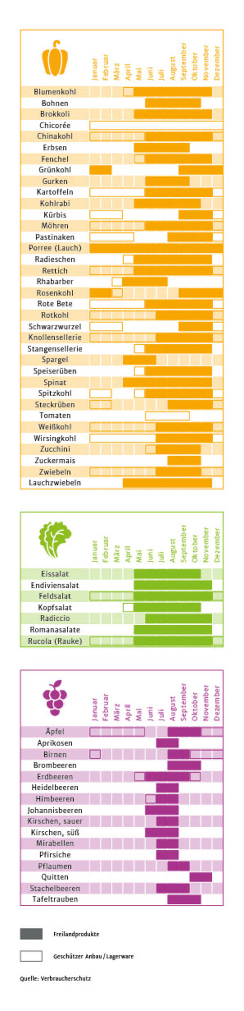 Wer sich ausgewogen und gesund ernähren will, deckt sich mit viel Obst und Gemüse ein und achtet auf eine abwechslungsreiche Ernährung. Mit einem Saisonkalender erfährst du, wann das Obst und Gemüse erntefrisch im Regal liegt.