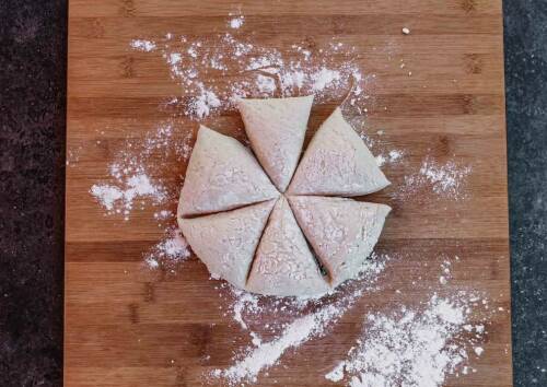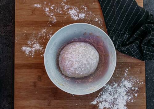 Bereite den Teig rechtzeitig vor, denn der Hefeteig muss ungefähr für 30 Minuten gehen. In der Zwischenzeit kannst du deine Feuerstelle, den Grill oder Backofen einheizen.