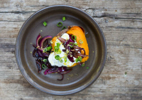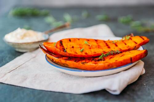 Du wünschst dir ein Süßkartoffel-Rezept für die Grill-Saison? Voilà: unsere „gekräuterten“ Süßkartoffeln vom Grill, die sicher auch Fleischliebhaber überzeugen. Du möchtest anspruchsvolle Gäste beeindrucken? Dann könnte deine Wahl auf unsere Gebackenen Süßkartoffeln mit Zitronenschmand und karamellisierten Zwiebeln fallen.