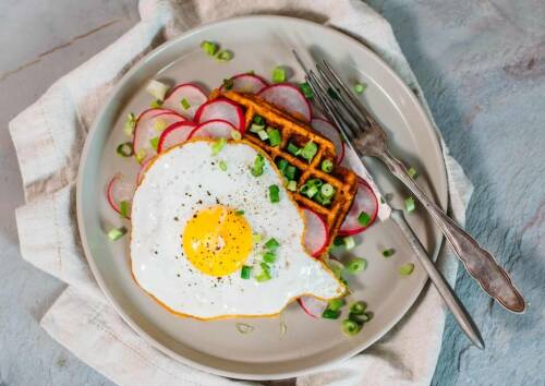 Dir steht der Sinn nach einem nährstoffreichen Snack? Diesbezüglich triffst du mit unserem Süßkartoffeltoast mit Feta voll ins Schwarze. Fans von herzhaften Waffeln lassen sich wiederum mit unseren Süßkartoffeln-Waffeln mit Ei, Frühlingszwiebeln und Radieschen um den Finger wickeln.